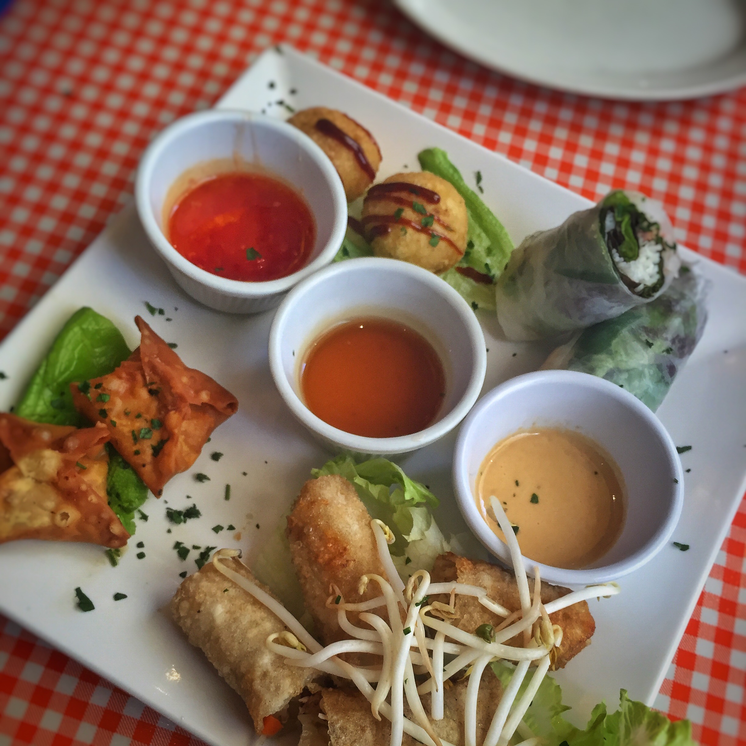 Plato degustación para dos: surtido de wontons, nems, bombas de cerdo y rollos de verano