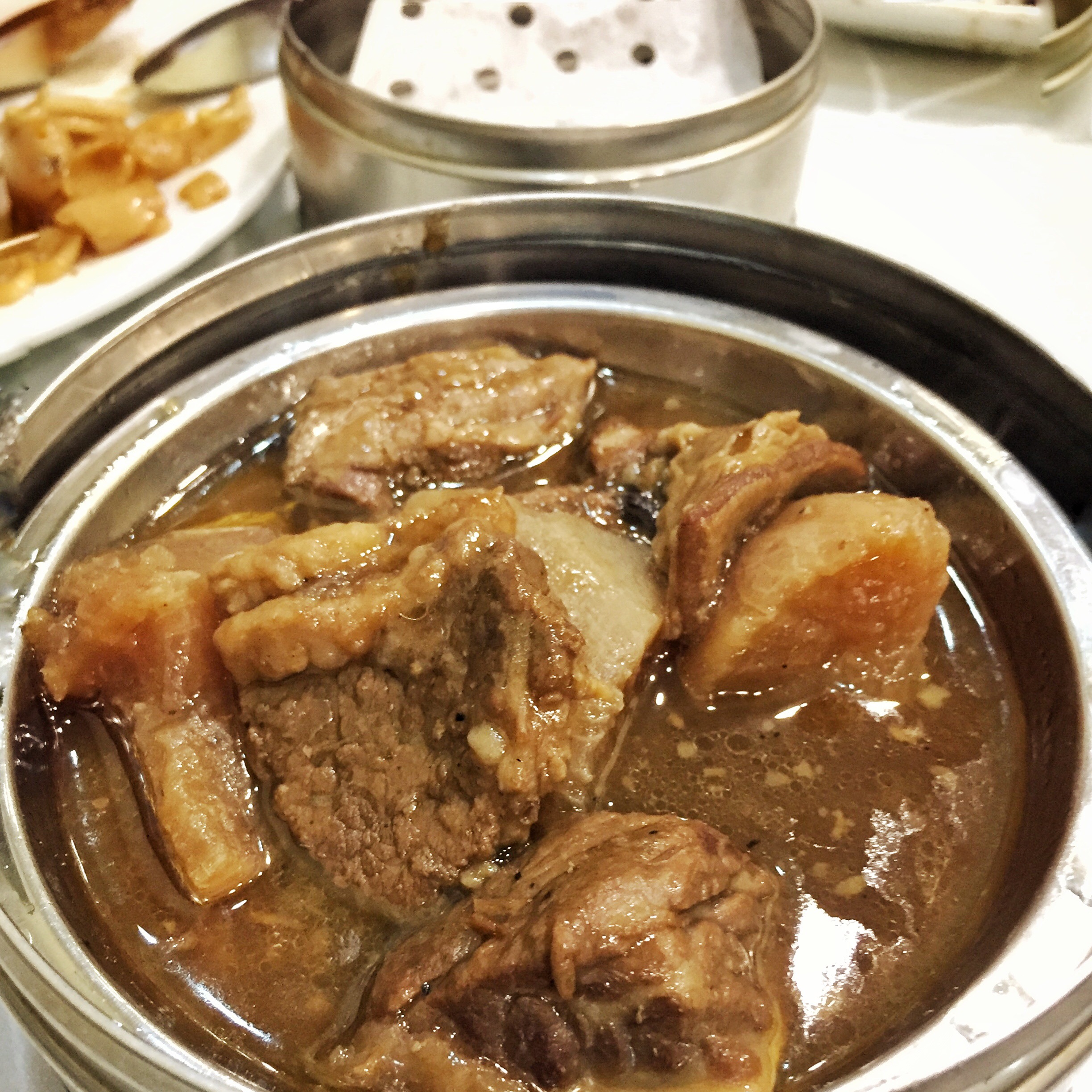 Lo traen todo bastante rápido teniendo en cuenta que el local está totalmente lleno. Primero los dim sums y luego los fideos y el guiso de ternera. De lo mejorcito que me llevo a la boca son los cheung fun, unos rollitos hechos con pasta de arroz y rellenos de cerdo y verduras sobre una salsa de soja y vinagre. Suaves de textura y fuertes de sabor. Los demás dim sums son correctos aunque lo más destacado es el guiso de ternera con nabos, lleno de tendones y grasa al más puro estilo chino, pero con un caldo buenísimo y unos nabos que se derriten en la boca.