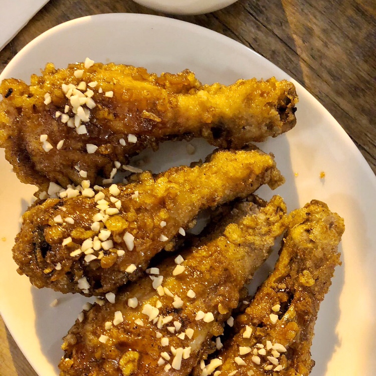 Por último pedimos el honey garlic chicken, otro imprescindible de la sobremesa coreana. Por lo visto los coreanos tienen fama de ser los reyes del frito, sobretodo si es para acompañar una cerveza a media tarde. Fue de lo mejorcito que pedimos! Los muslos de pollo eran crujientes por fuera, tiernos por dentro y con un rebozado dulce y salado muy sabroso.
